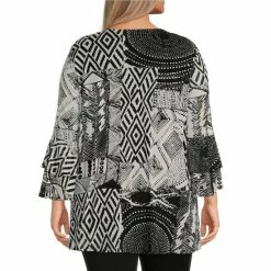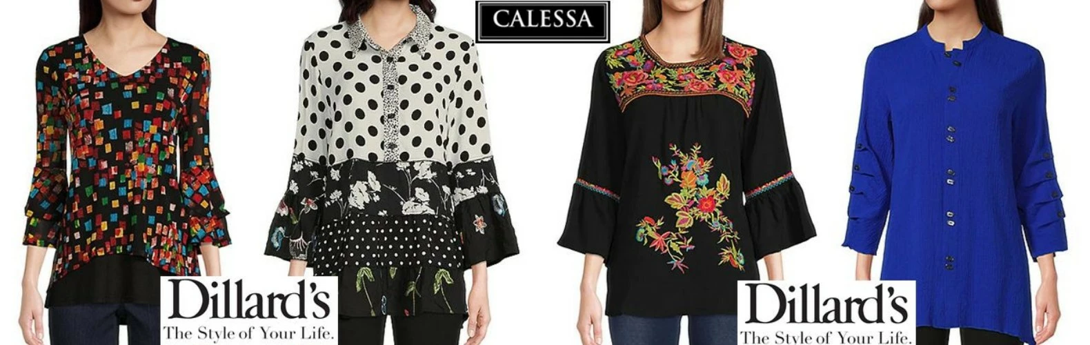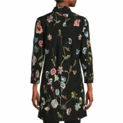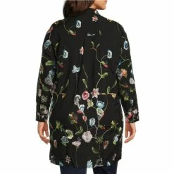 Buy 🧨 Calessa Plus Size Floral Embroidery Point Collar Long Sleeve Button Front Duster Black Multi 🎁