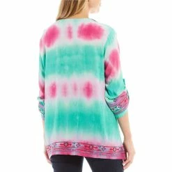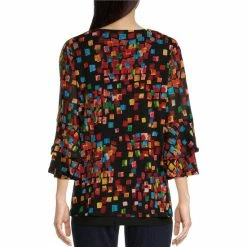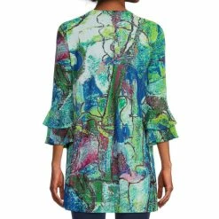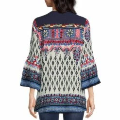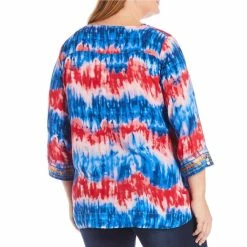 Top 10 🛒 Calessa Printed Ikat Border Embroidered Split Round Neck 3/4 Sleeve Blouse Blue Multi ✨