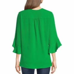 Cheap ✨ Calessa Petite Size Pebble Crepe V-Neck 3/4 Ruffle Sleeve Crossover Hem Tunic Kelly Green 🌟