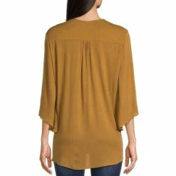 Deals ✔️ Calessa Petite Size Embroidered Tie Dye Print V-Neck 3/4 Sleeve Tunic Olive Multi ✔️