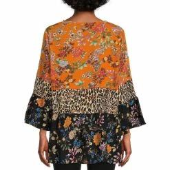 Coupon 👏 Calessa Petite Size Color Blocked Zebra Print V-Neck 3/4 Kimono Sleeve Tunic Black/white 🛒