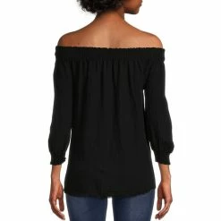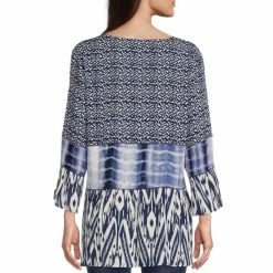 Wholesale 😀 Calessa Petite Size Printed Crinkle Patchwork 3/4 Sleeve Round Neck Tunic Blue Multi 🥰