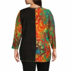 Best Sale 💯 Calessa Plus Size Solid And Plaid Print Long Sleeve Half Zip Twofer Tunic Black Multi 👍