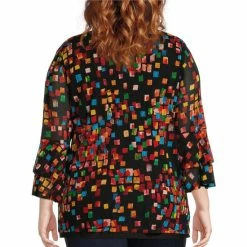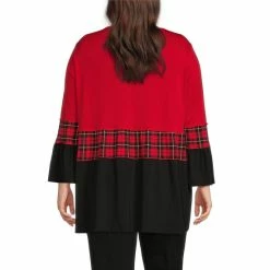 Budget 🔔 Calessa Plus Size Color Blocked Knit Jewel Neck 3/4 Ruffled Sleeve Tiered Tunic Red Multi 🧨