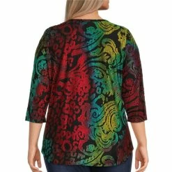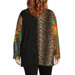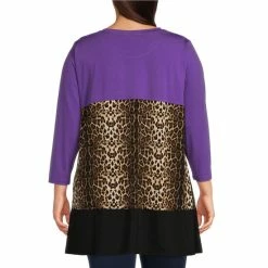 Buy ⌛ Calessa Plus Size Animal Color Block Print Jewel Neck 3/4 Sleeve High-Low Tunic Black Multi 😍