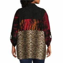 Promo 🎉 Calessa Plus Size Patchwork Print Drape Neck 3/4 Sleeve Asymmetric Hem Tunic Black Multi 👏