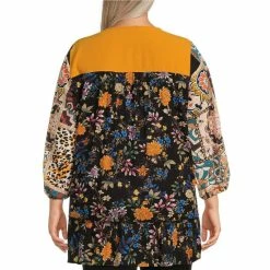 Wholesale 🤩 Calessa Plus Size Patchwork Embroidered 3/4 Sleeve Jewel Neck Tunic Gold Multi 🎁