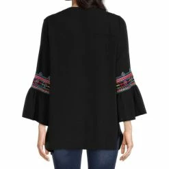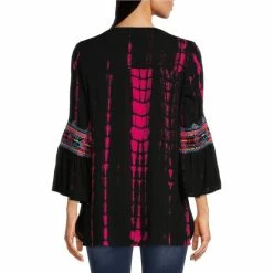 Cheap ❤️ Calessa Woven Embroidered Tie Dye Print Split V-Neck 3/4 Flare Sleeve Tunic Fuchsia/multi 🥰