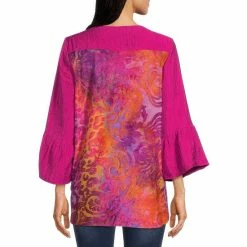 Top 10 🎉 Calessa Embroidered 3/4 Bell Sleeve Jewel Neck Printed Back Detail Top Fuchsia Multi 😍
