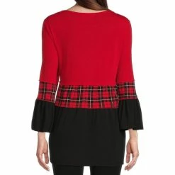Budget 🔔 Calessa Plus Size Color Blocked Knit Jewel Neck 3/4 Ruffled Sleeve Tiered Tunic Red Multi 🧨