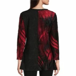 Cheap ❤️ Calessa Burnout Abstract Paisley Print Jewel Neck 3/4 Sleeve Jacquard Blouse Red Multi ✨