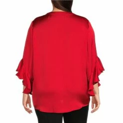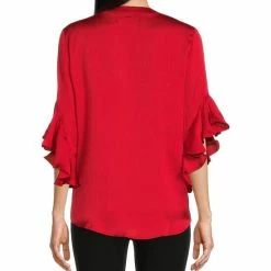 Hot Sale 💯 Calessa Petite Size Textured Satin Split Round Neck 3/4 Ruffle Sleeve Blouse 🔔