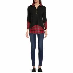 - Curved plaid print inset hemline